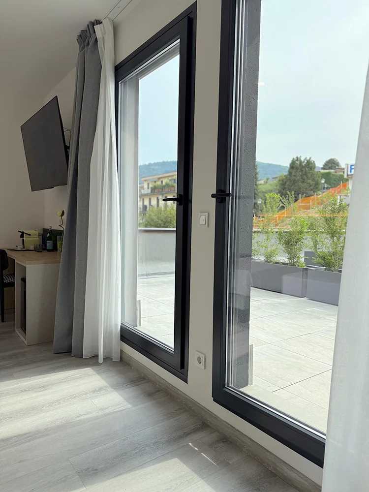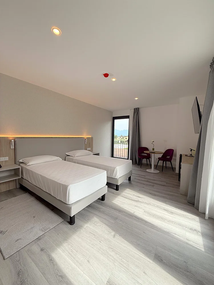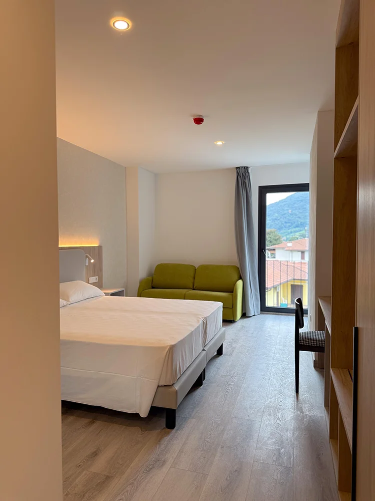 A caratterizzare le camere vi è un pavimento innovativo, l’spc, di chiara colorazione, grigio, moderno e luminoso. Scelta appositamente fatta per unire estetica e praticità: il prodotto posato è funzionale, resistente e molto versatile, ideale quindi per il contesto.